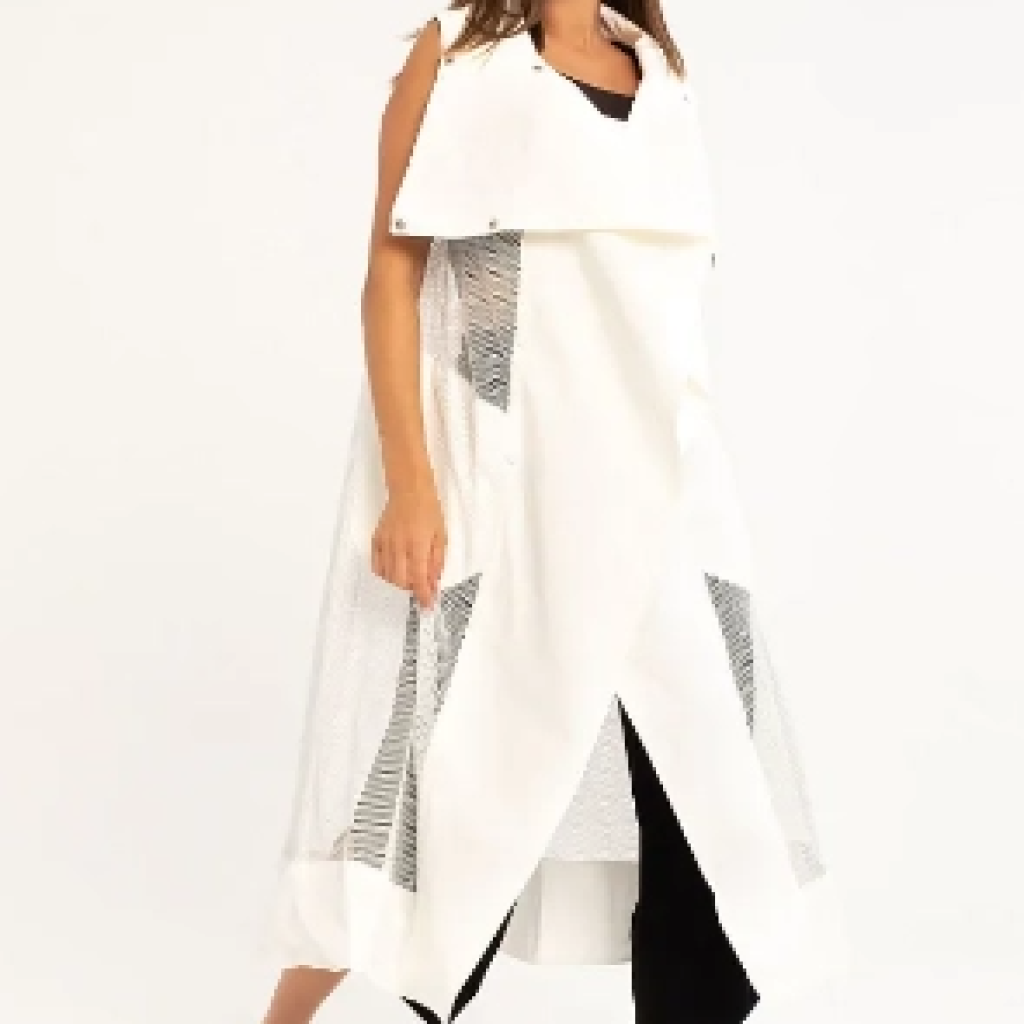 Beyaz Keten Kumaş Puantiye Desenli Pantolon