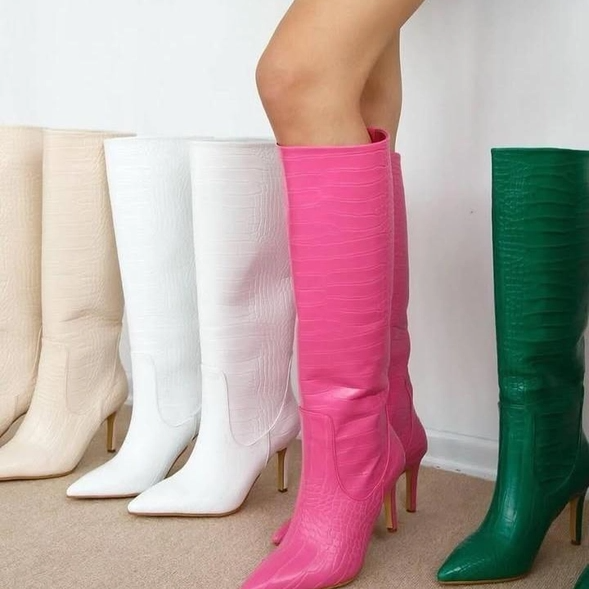 Fuşya Sivri Burun Desenli Çizme