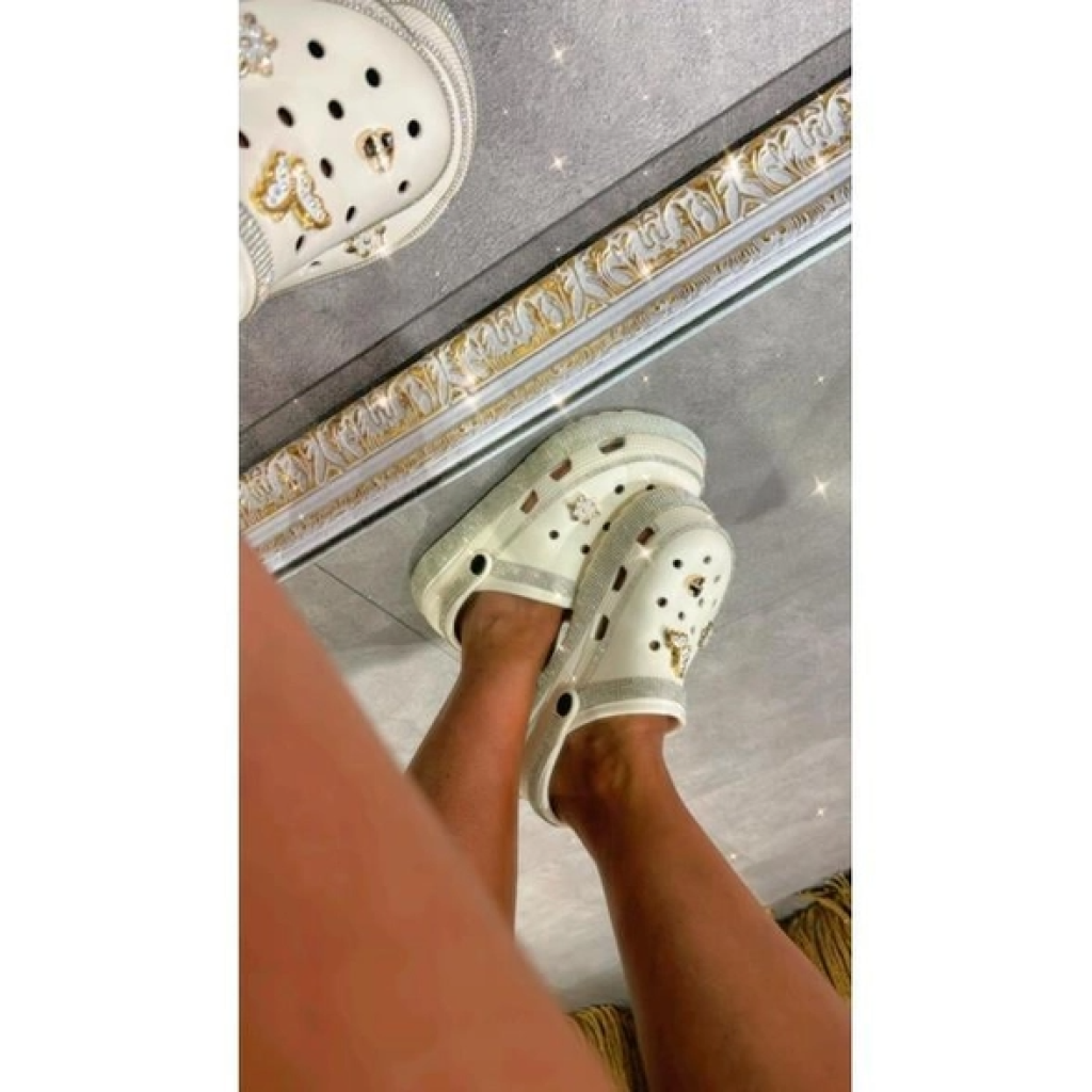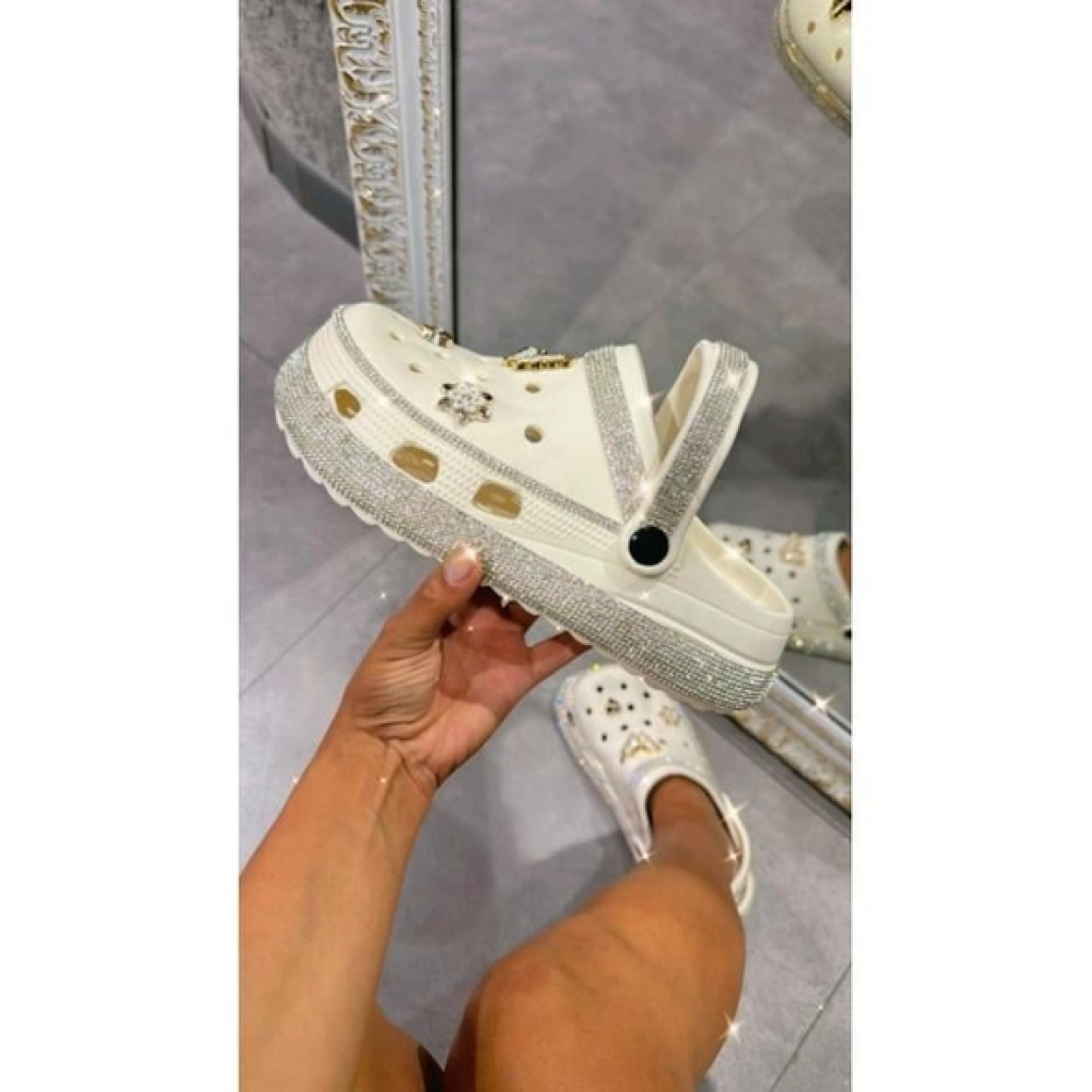 Krem Rengi Taş Tasarımlı Crocs Terlik