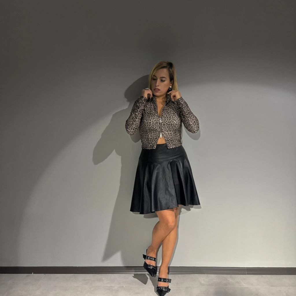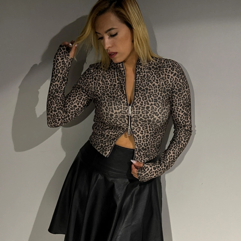 Leopar Önü Çift Fermuarlı Yarın Balıkçı Bluz