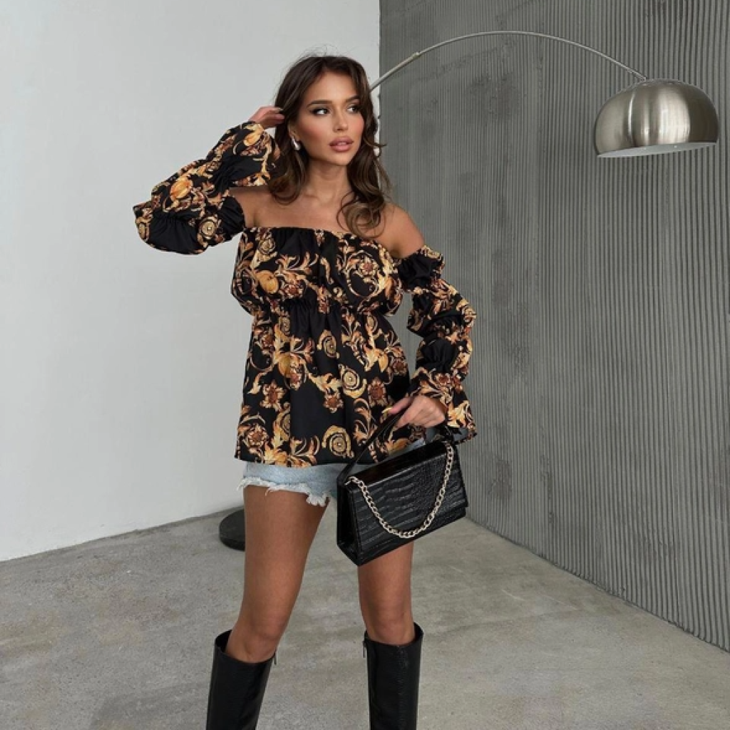 Sütlü Kahve Tek Omuz Etek Ucu Volanlı Tasarım Bluz