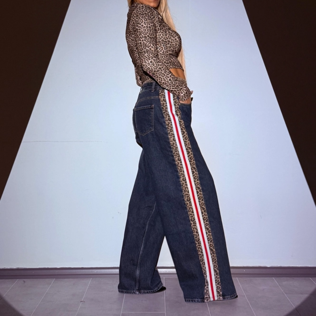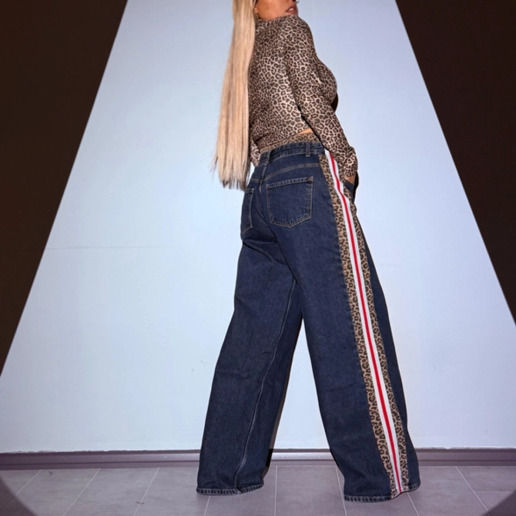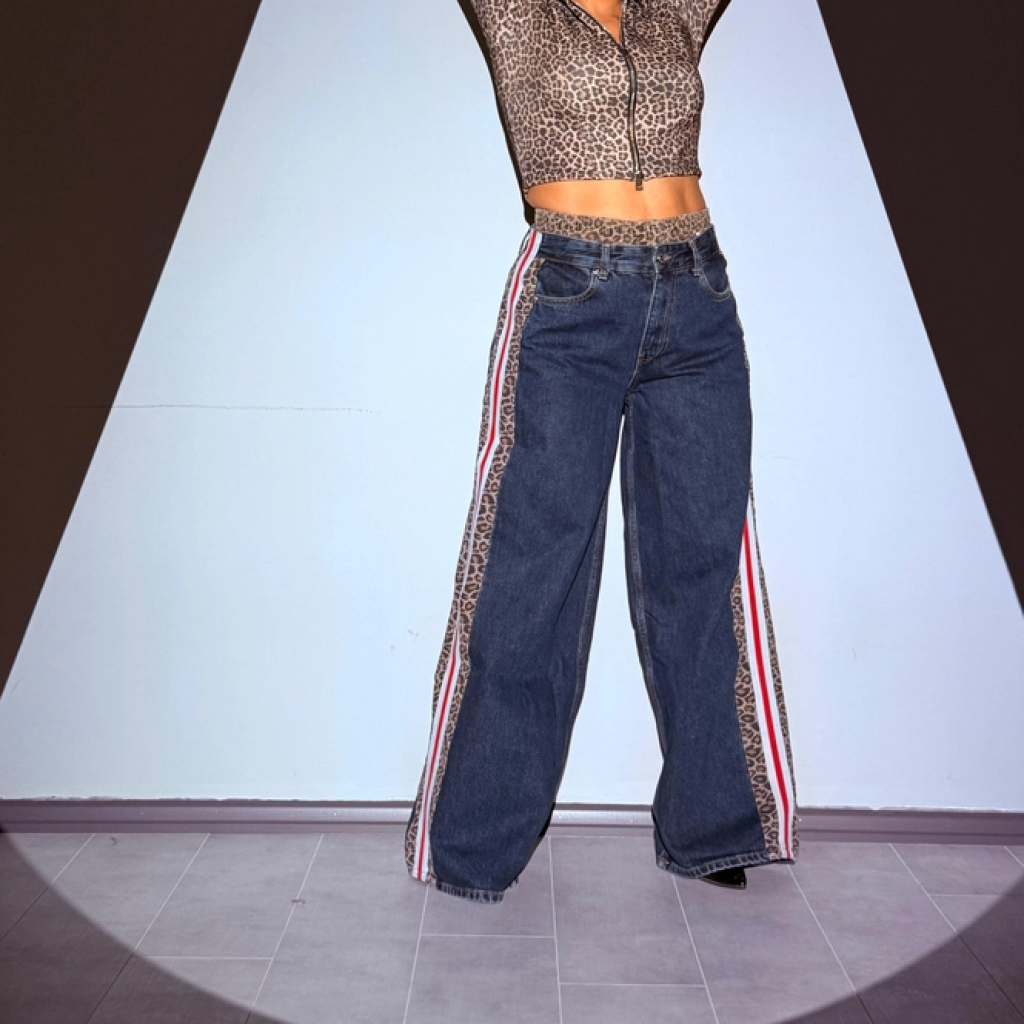Yüksek Bel Beyaz Taş ve Tüy Detaylı Tasarım Jean