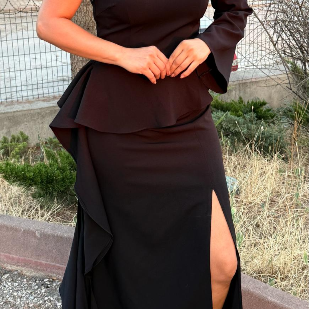 Siyah Payetli Kot Garnili Tasarım Etek