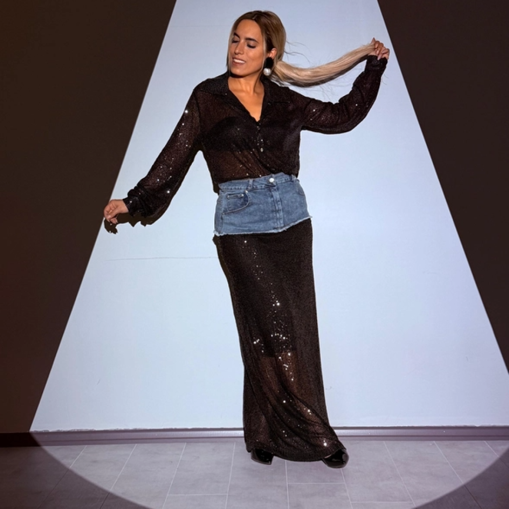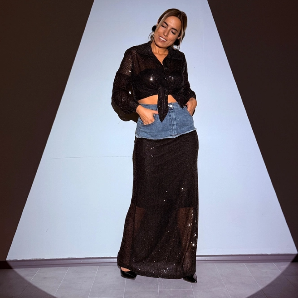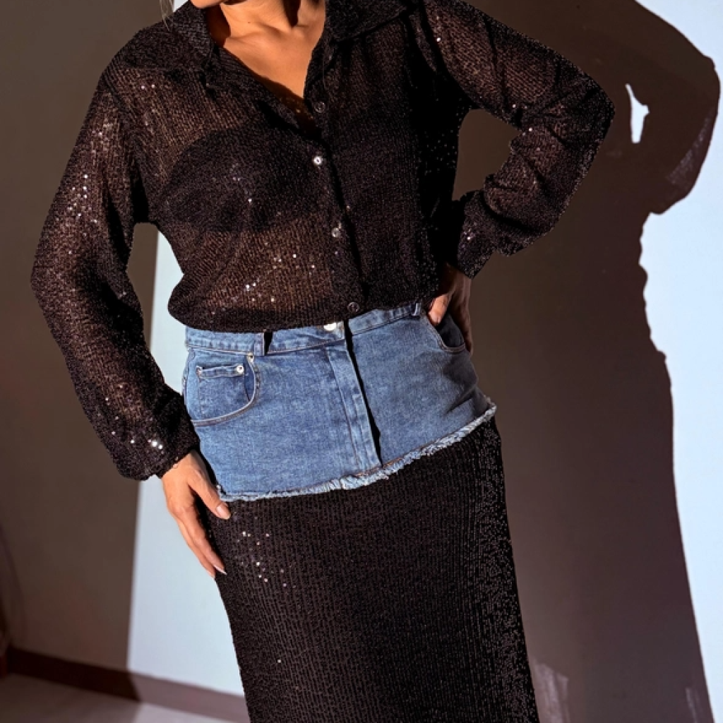 Siyah Payetli Kot Garnili Tasarım Etek