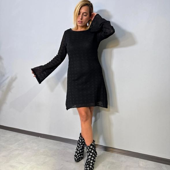 Siyah Sırt Dekolteli Triko Mini Elbise