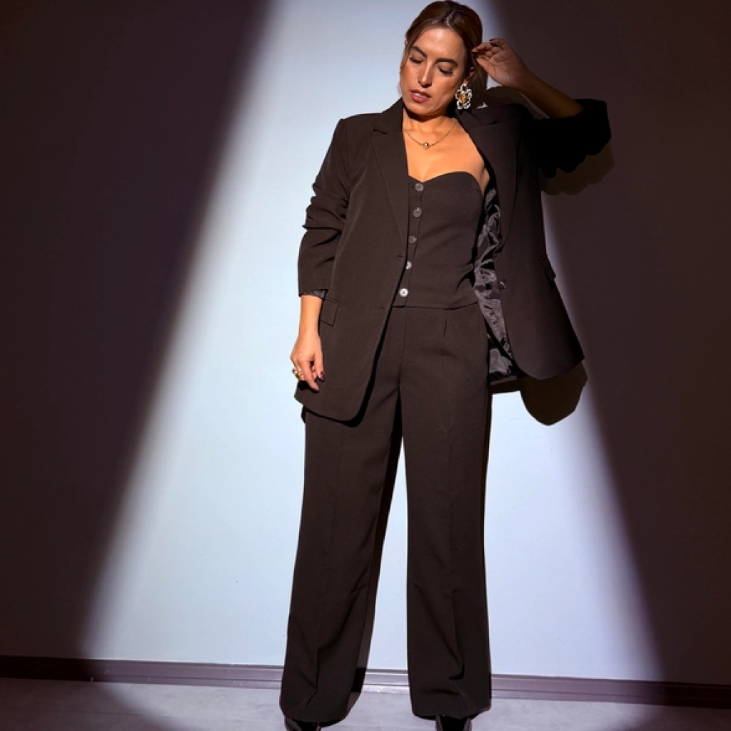 Sİyah Straplez Yelek Pantolon Ceket Takım
