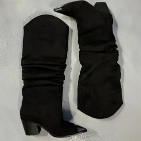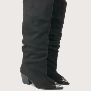Siyah Süet Önü Metal Detay Kovboy Çizme