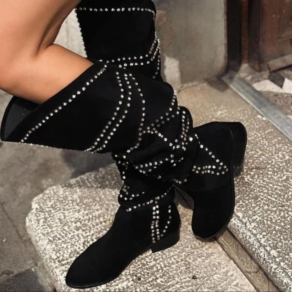Siyah Süet Önü Metal Detay Kovboy Çizme
