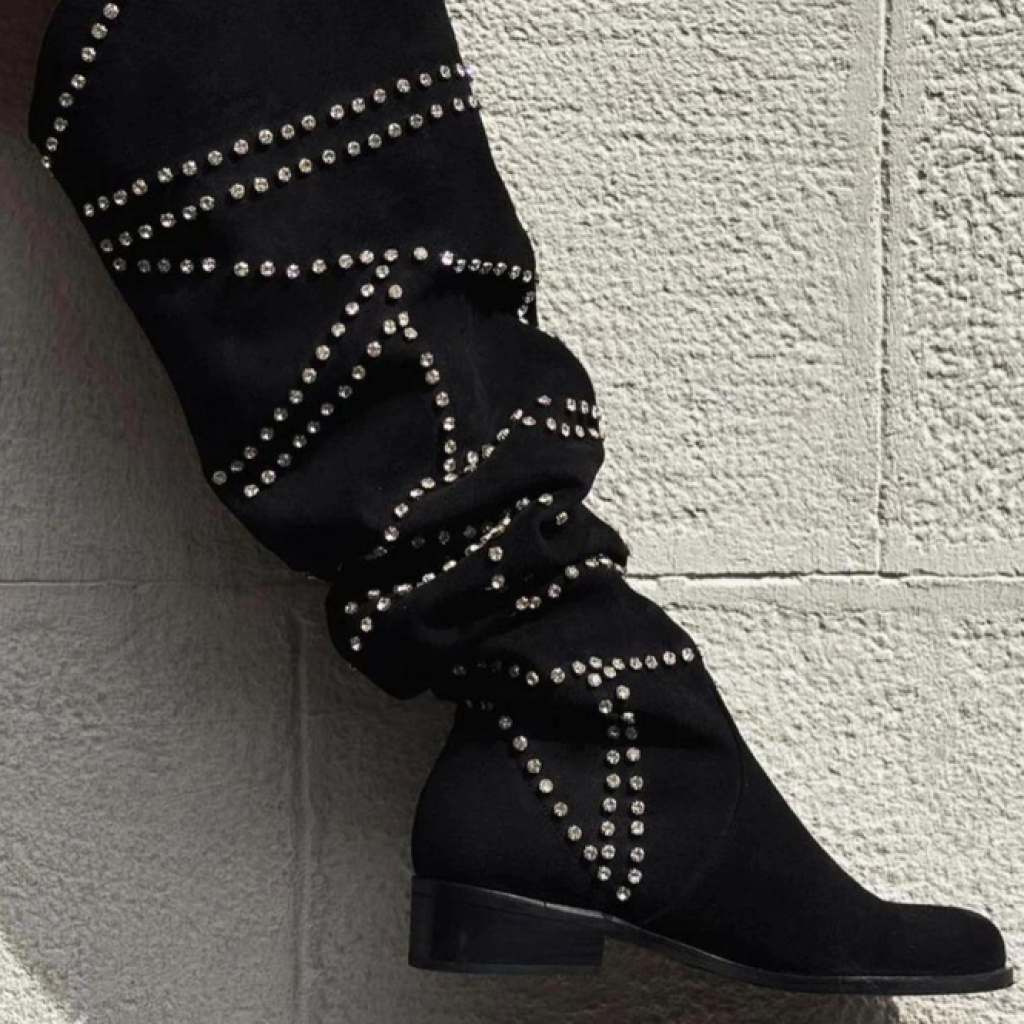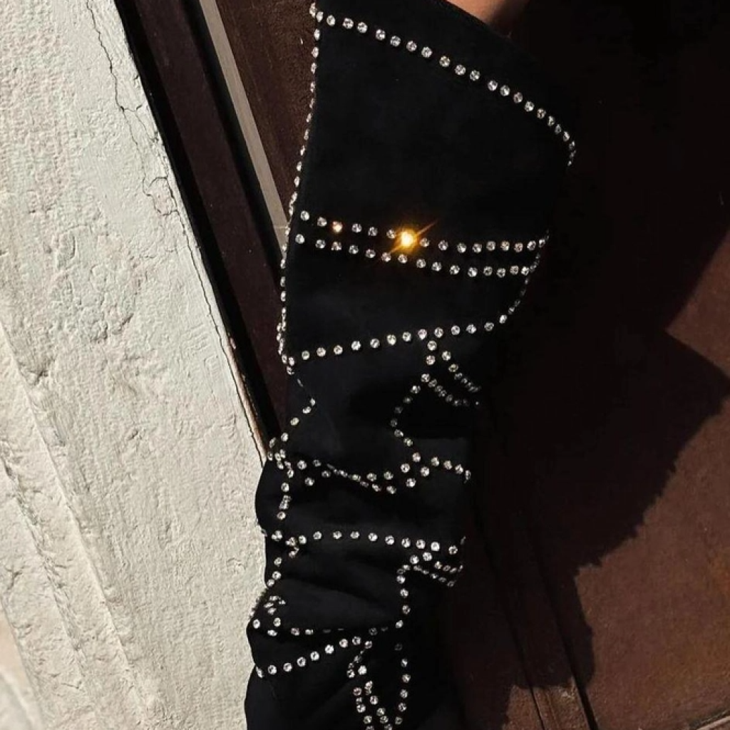 Kırmızı Süet Taş İşlemeli Çorap Çizme
