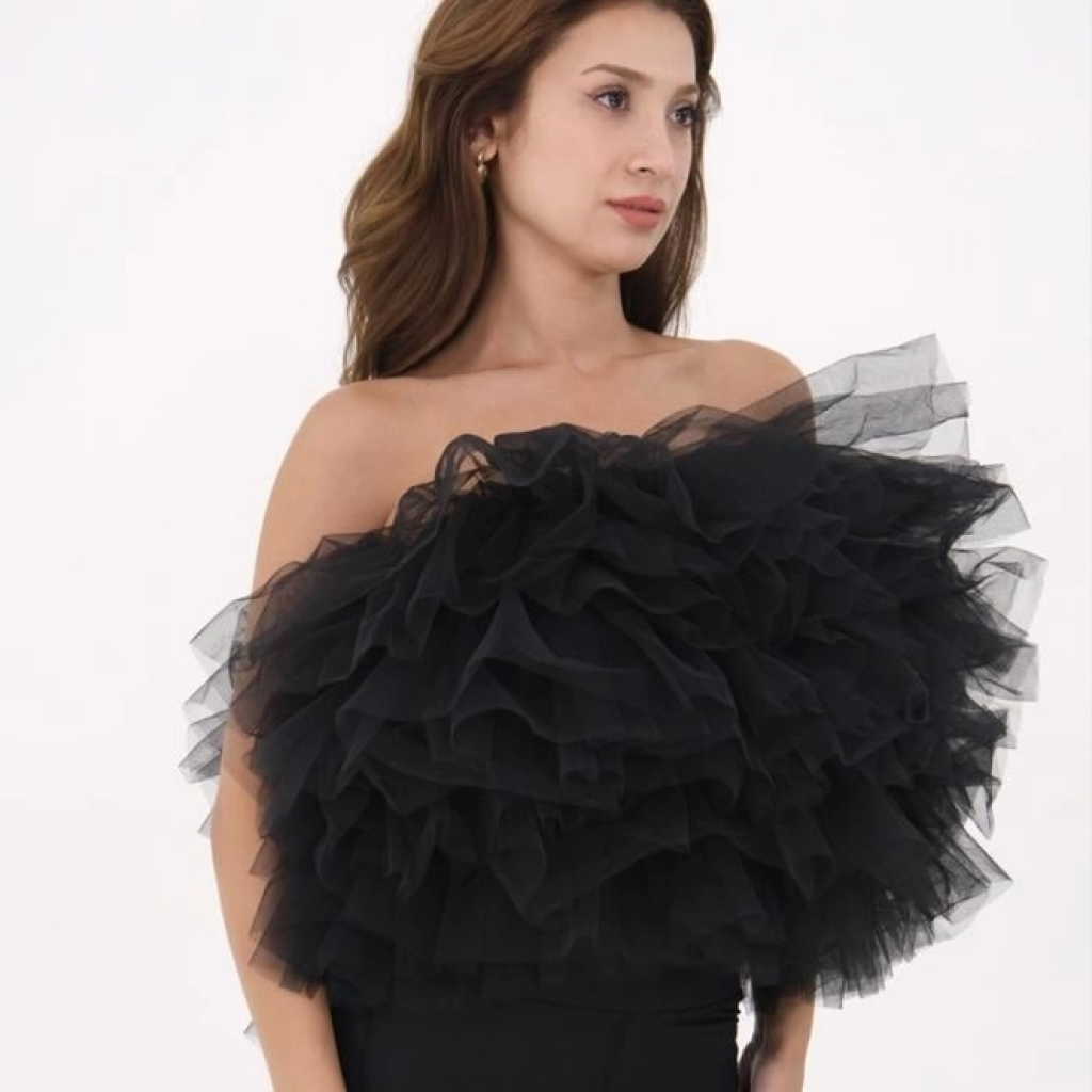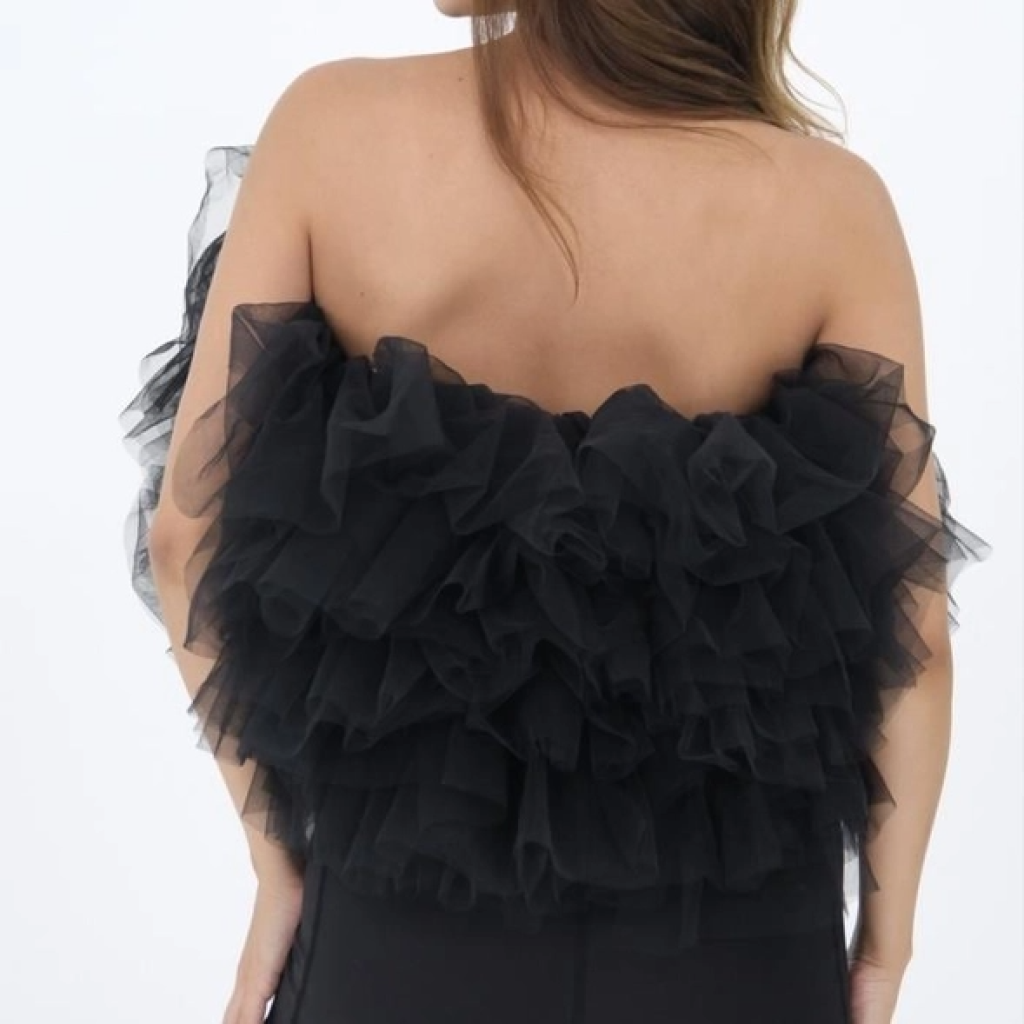 Siyah Saten Kumaş Desenli Tasarım Büstiyer