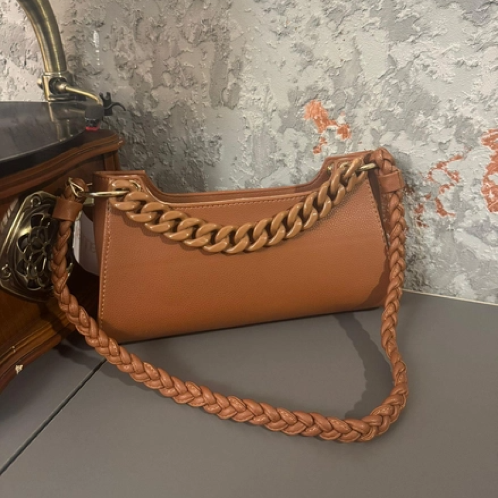 Taba Sapı Örgü Ve Kemik Detaylı Deri Baget Çanta